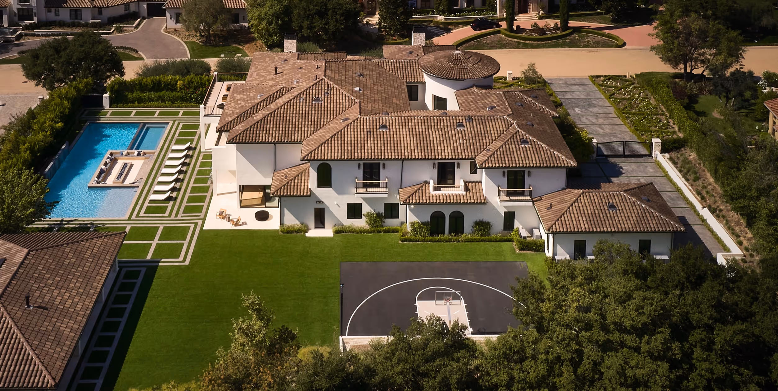 Located within one of Calabasas’ most sought-after gated communities, this expansive seven-bedroom, nine-bathroom residence embodies refined, contemporary living.